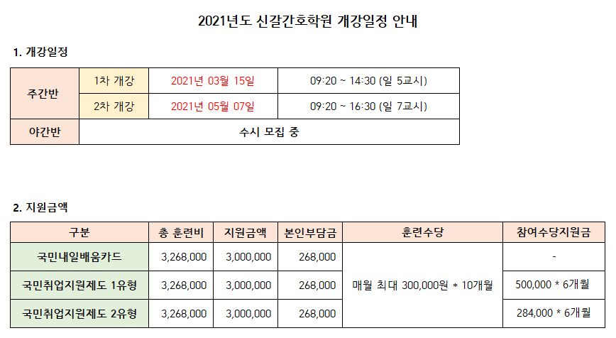 2021³âµµ »ó¹Ý±â °£È£Á¶¹«»ç ±¹ºñ ¹× ÀÏ¹Ý 2Â÷ °³°­ÀÏÁ¤ ¾È³»ÀÔ´Ï´Ù.