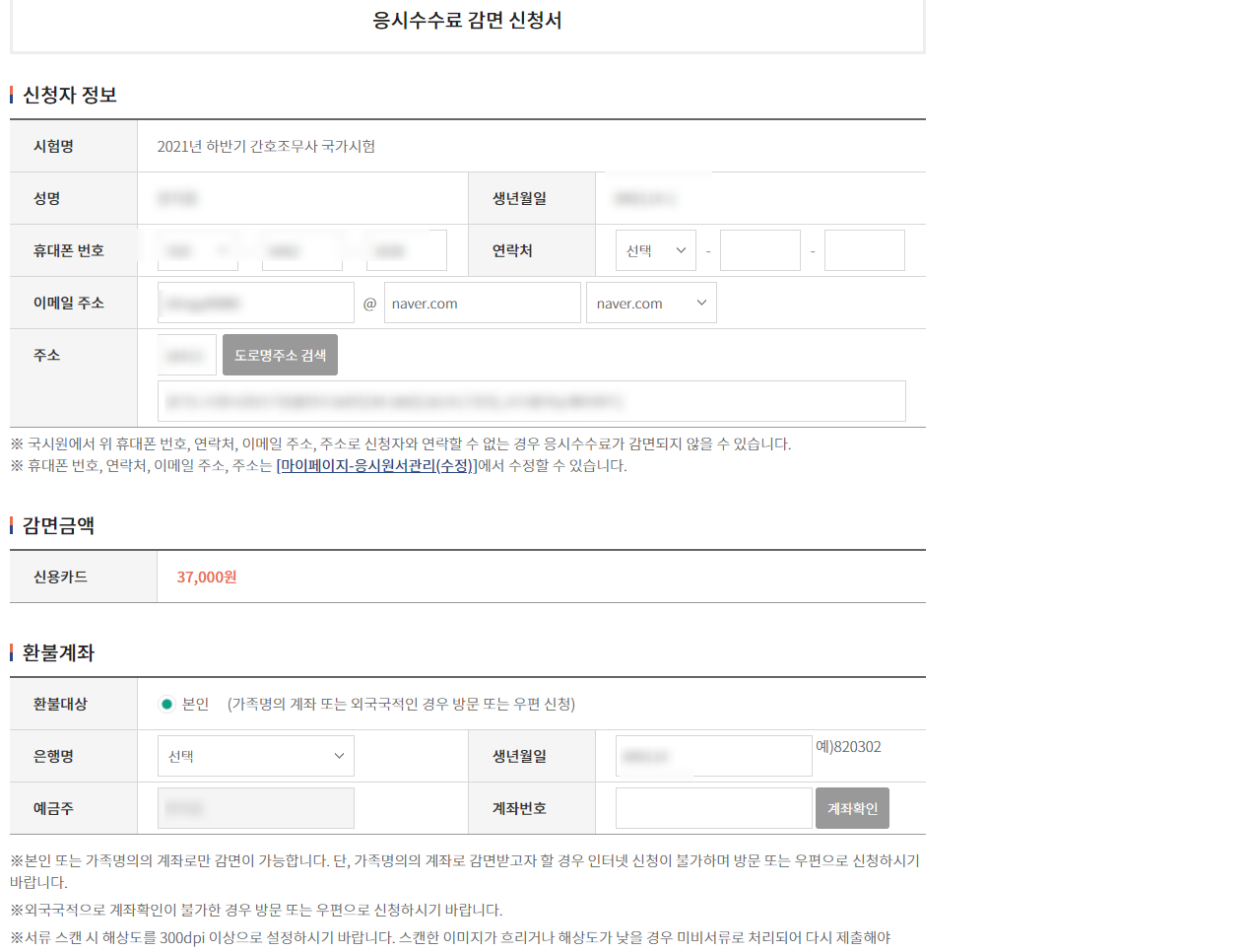 : °£È£Á¶¹«»ç ±¹°¡½ÃÇè ÀÀ½Ã¼ö¼ö·á Àü¾× (37,000¿ø)